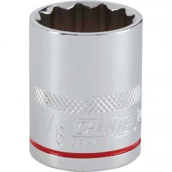 Color band denotes SAE/Metric measurement for easy identification. Sockets have textured band for greater gripping power. 6-point versions offer more surface area making them less likely to slip off or round over corners, while 12-point versions provide more contact points making them easier to fit onto bolts. Chrome vanadium steel. Lifetime warranty.