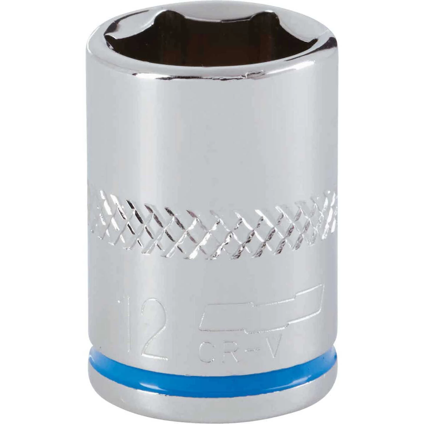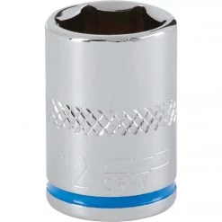 Color band denotes SAE/Metric measurement for easy identification. Sockets have textured band for greater gripping power. 6-point versions offer more surface area making them less likely to slip off or round over corners, while 12-point versions provide more contact points making them easier to fit onto bolts. Chrome vanadium steel. Lifetime warranty.