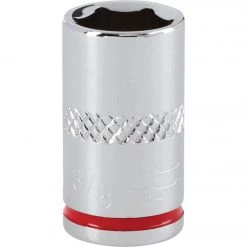 Color band denotes SAE/Metric measurement for easy identification. Sockets have textured band for greater gripping power. 6-point versions offer more surface area making them less likely to slip off or round over corners, while 12-point versions provide more contact points making them easier to fit onto bolts. Chrome vanadium steel. Lifetime warranty.