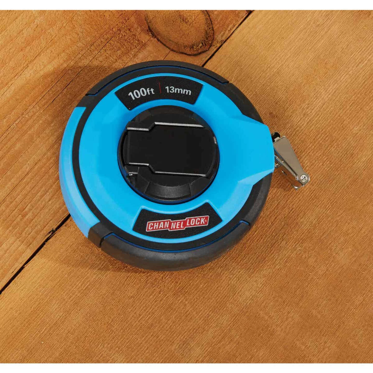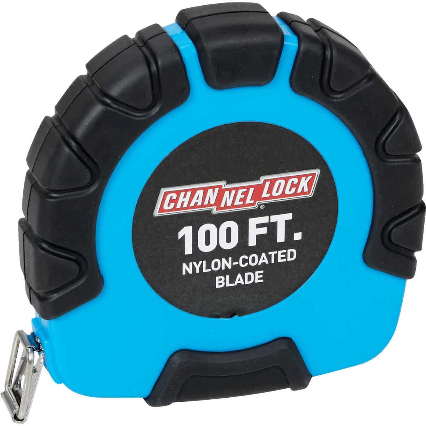 Channellock closed case steel tape measure. Features a compact rubber grip case with a folding rewind crank handle. Blade is printed in feet (one side only) and has a nylon coating for added durability. Also comes with a multi-use end hook for use in different applications.