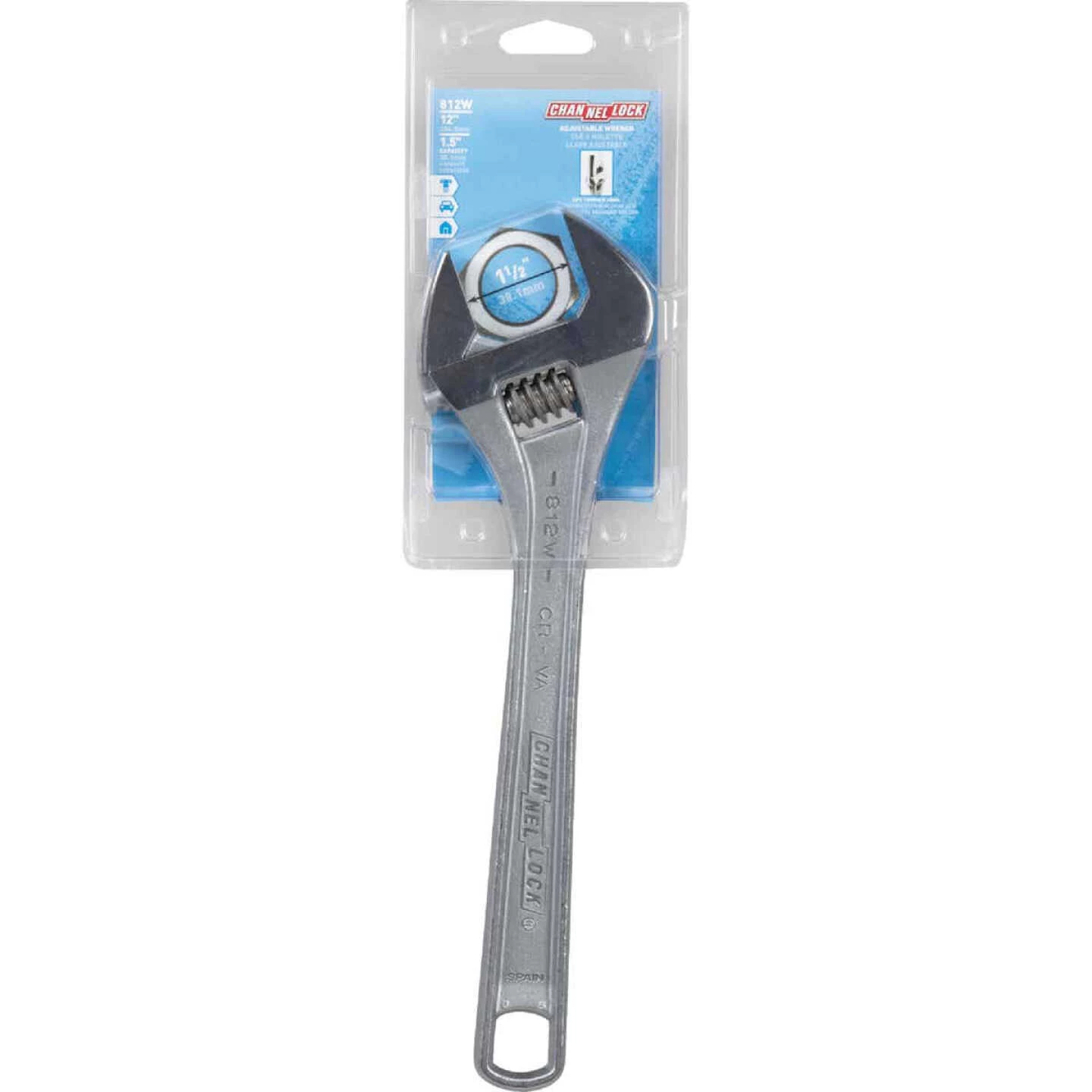 Wider ergonomic handle for comfortable grip. Measurement scales (in. on front, mm on reverse) are handy for sizing nuts, pipe, and tube diameters. Parallel jaw surfaces grip safely and reduces possibility of damage. Chrome vanadium steel construction.