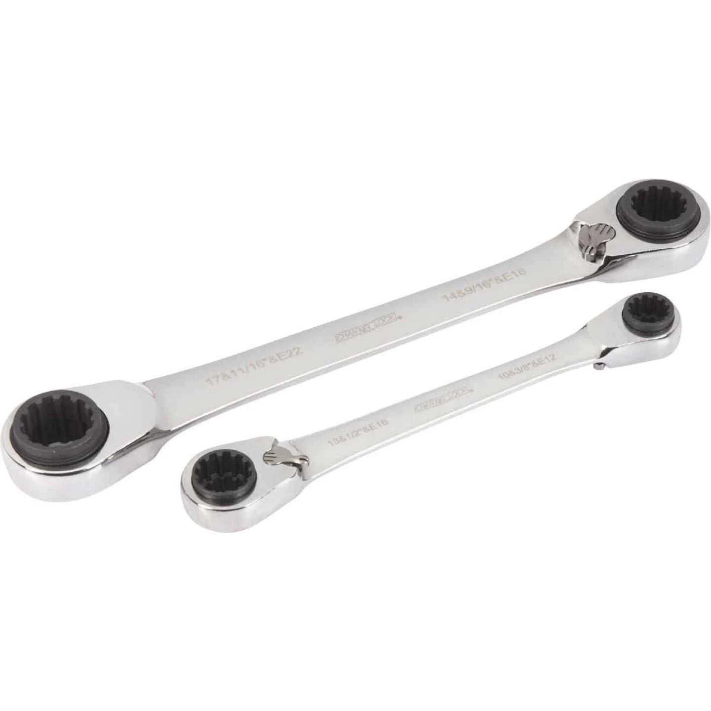 28-in-1 universal ratcheting box end. Chrome vanadium steel. Fully polished for professional appearance. Lifetime warranty. 63 sizes – includes 5/16″, 3/8″, 7/16″, 1/2″, 9/16″, 5/8″, 11/16″, 3/4″ 6-point and 12-point; 8mm, 10mm, 11mm, 13mm, 14mm, 16mm, 17mm, 19mm 6-Point, 12-Point and Spline; E10, E12, E14, E16, E18, E20, E22, E24 Star; 9/32″, 11/32″, 3/8″, 7/16″, 15/32″, 17/32″, 9/16″, 5/8″ Square; 7mm, 9mm, 11mm, 12mm, 13mm, 14mm, 16mm Square.