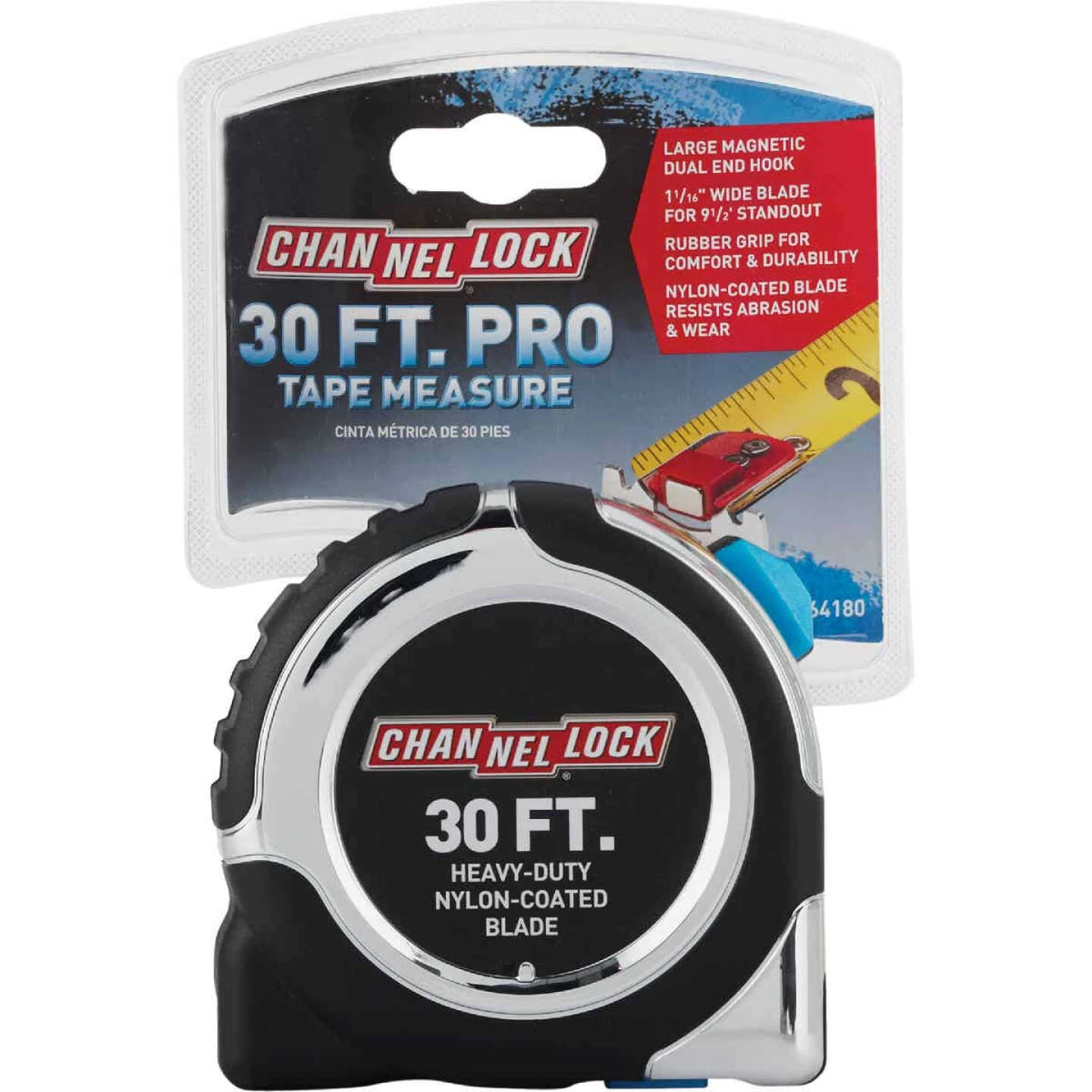 Case design fits comfortably in hand. Superior internal mechanism provides smooth operation. 2 color push-button lock with power return. Heavy-duty nylon coated blade for maximum durability. Large magnetic, flared dual end hook with 4-rivet construction. Vertically printed scale on back side of blade. Integrated belt clip on back of chrome case.