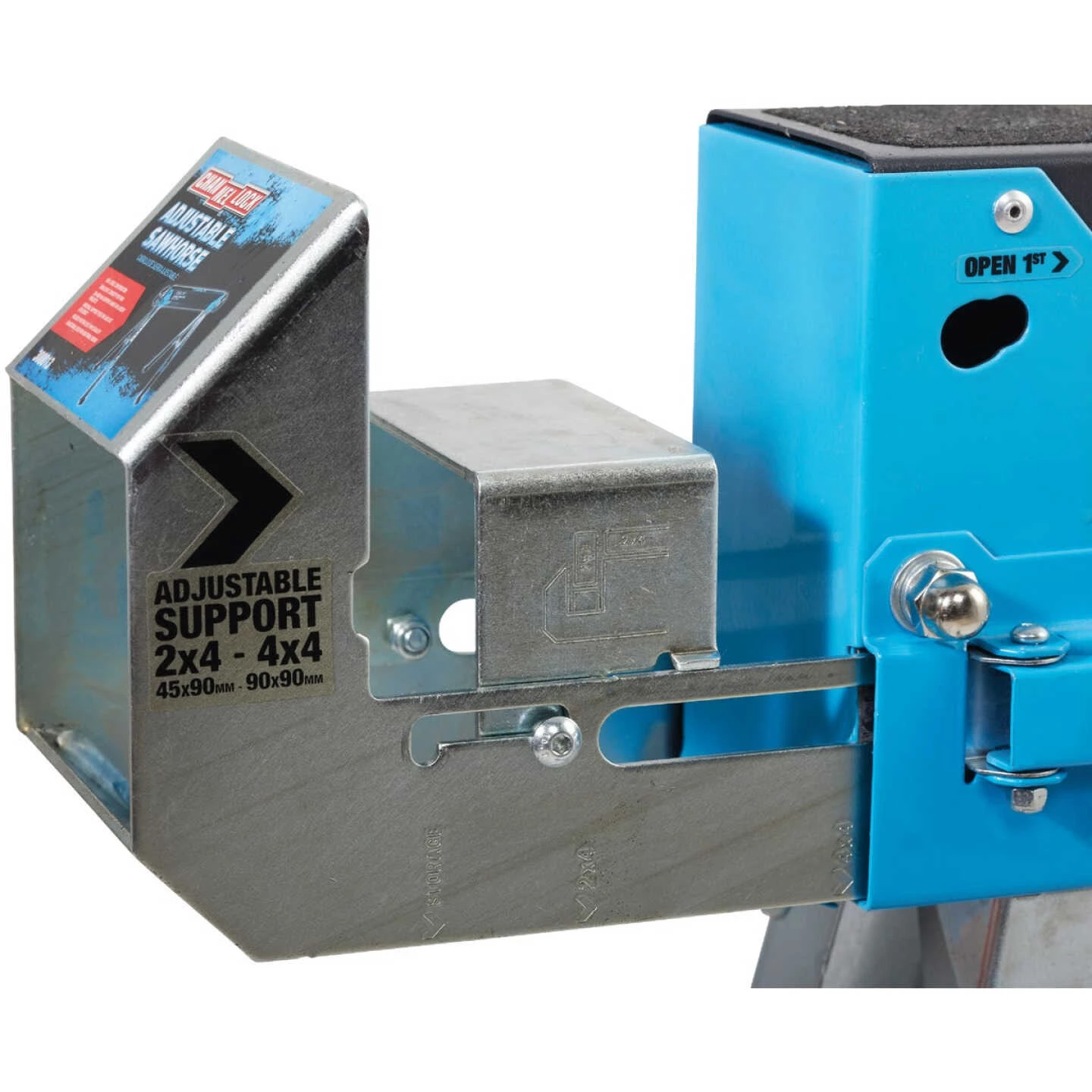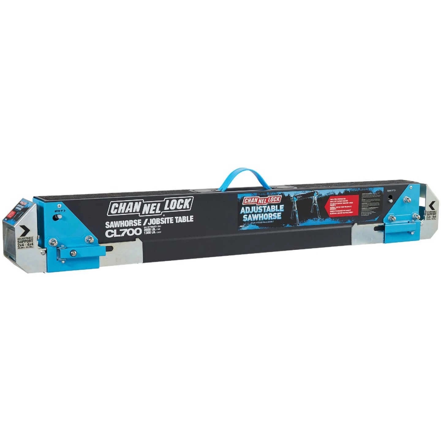 Adjustable sawhorse and jobsite table is durable, rugged and offers unparalleled value. Constructed of high-grade steel, this sawhorse has 1300 Lb. (pound) capacity alone, and 2600 Lb. per pair. Fast-open mechanism for straightforward and simple setup. Features adjustable support arms, adjustable height legs, material cutting and support pegs, easy-to-fold pivoting feet, powder coating and zinc-plated surfaces. Includes easy carry handle. Height: 25 In. to 32 In., Length: 39-1/4 In. to 45-3/4 In. (1 only – not a set)