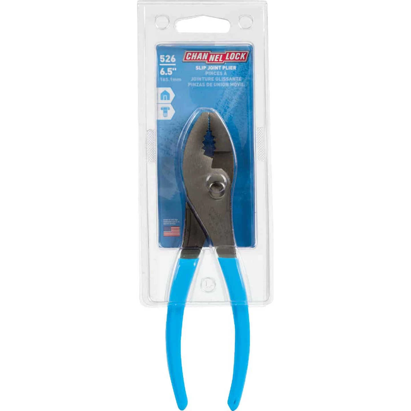 Thick nose pliers. Shear-type wire cutter. Precision made of fine polished, high-carbon drop forged steel. Patented PermaLock fastener eliminates nut and bolt failures. Channellock Blue dipped plastic grips.