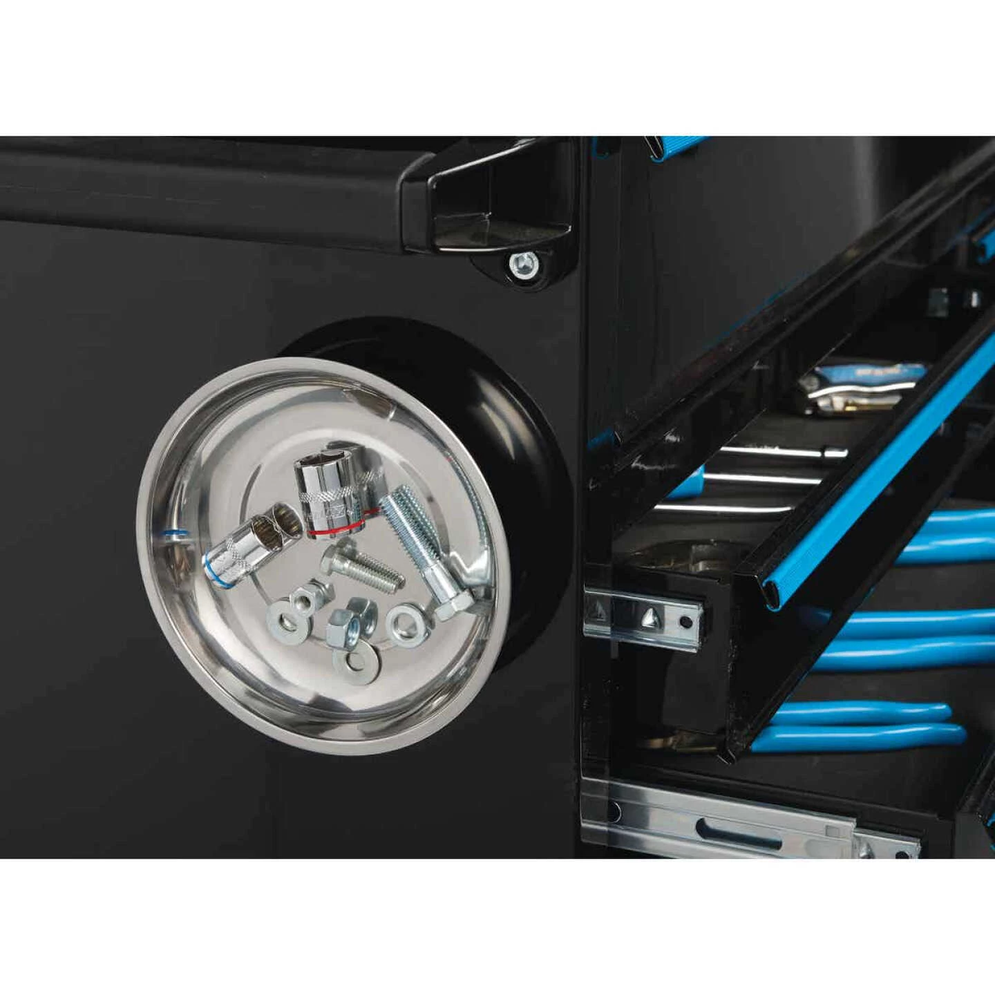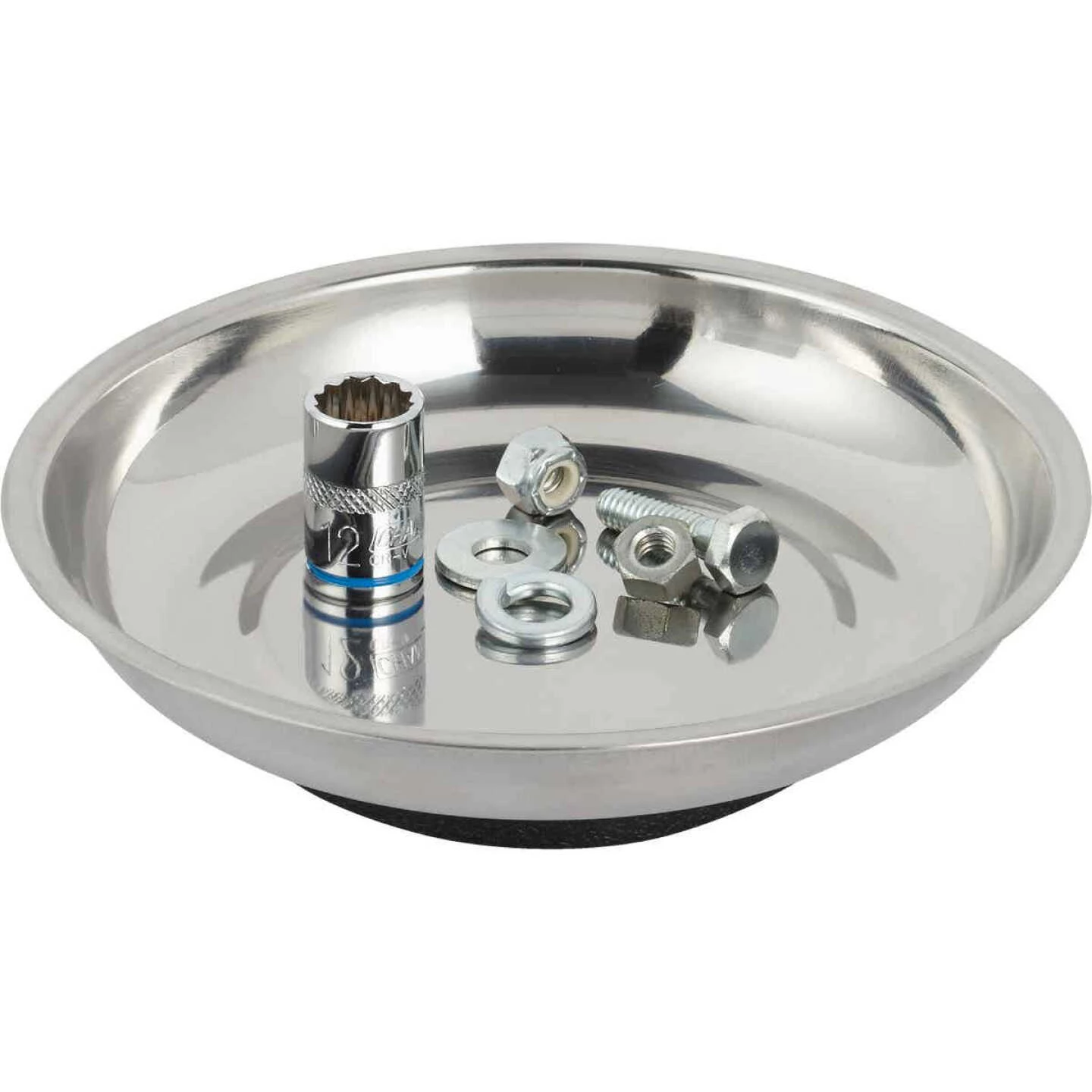Contains powerful ceramic magnets with rubber covers in the base which secure tray to a metal toolbox or table while keeping important metal pieces at hand. Use to store metal parts and tools during assembly and disassembly. Keep loose nuts, screws, and other small metal items in reach. Ideal for mechanics, craftsmen, and hobbyists.