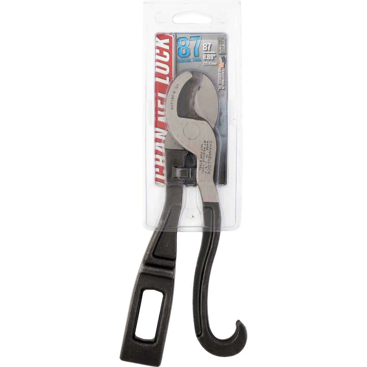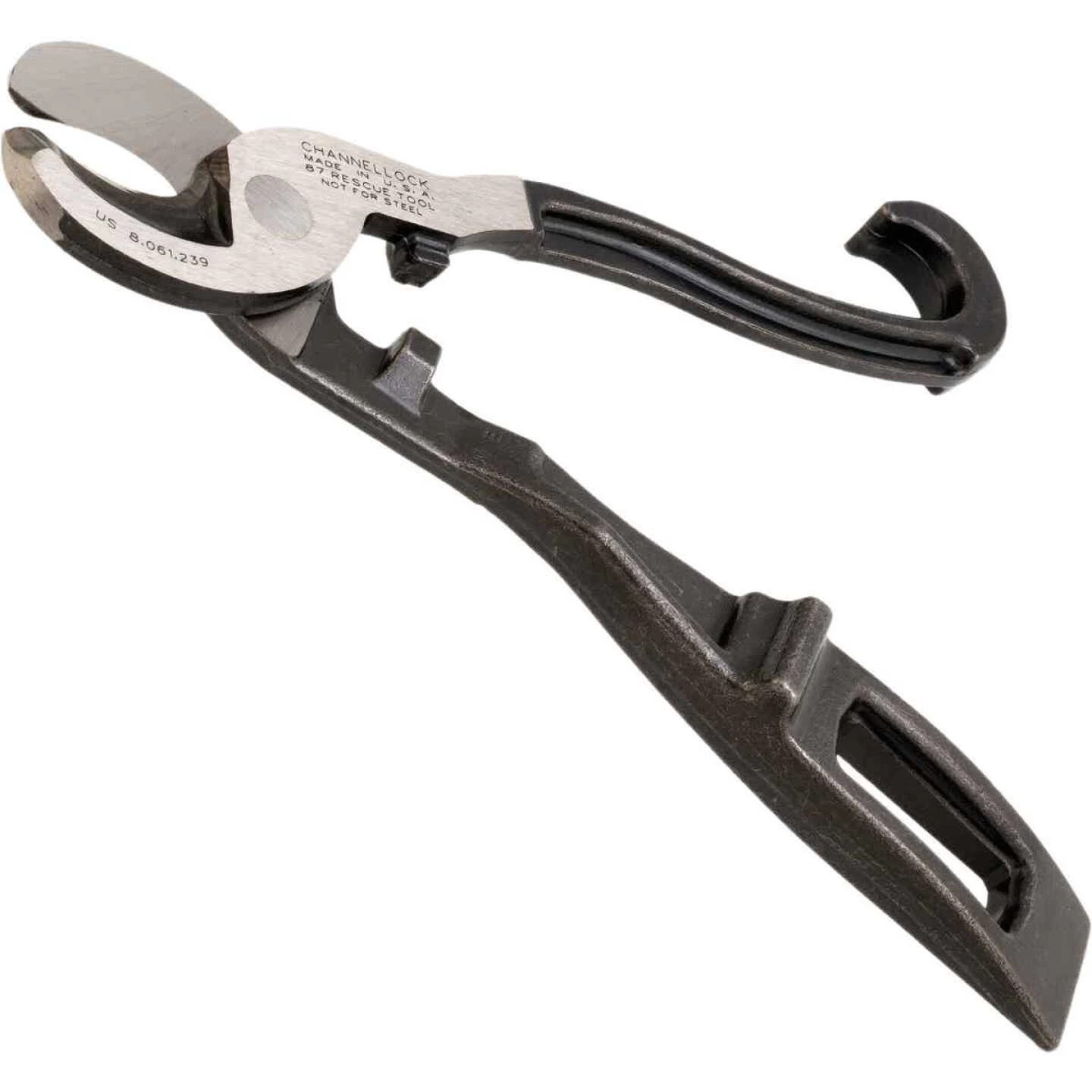 Fire rescue tool ideal to pry open windows and doors in case of an emergency. Features a narrow jaw profile which fits in tight spots. Cuts standard battery cables. Hardened cutting edges shear through soft metal. Spanner wrench tightens and loosens up to 6-inch hose couplings. Shuts off gas safety valves.