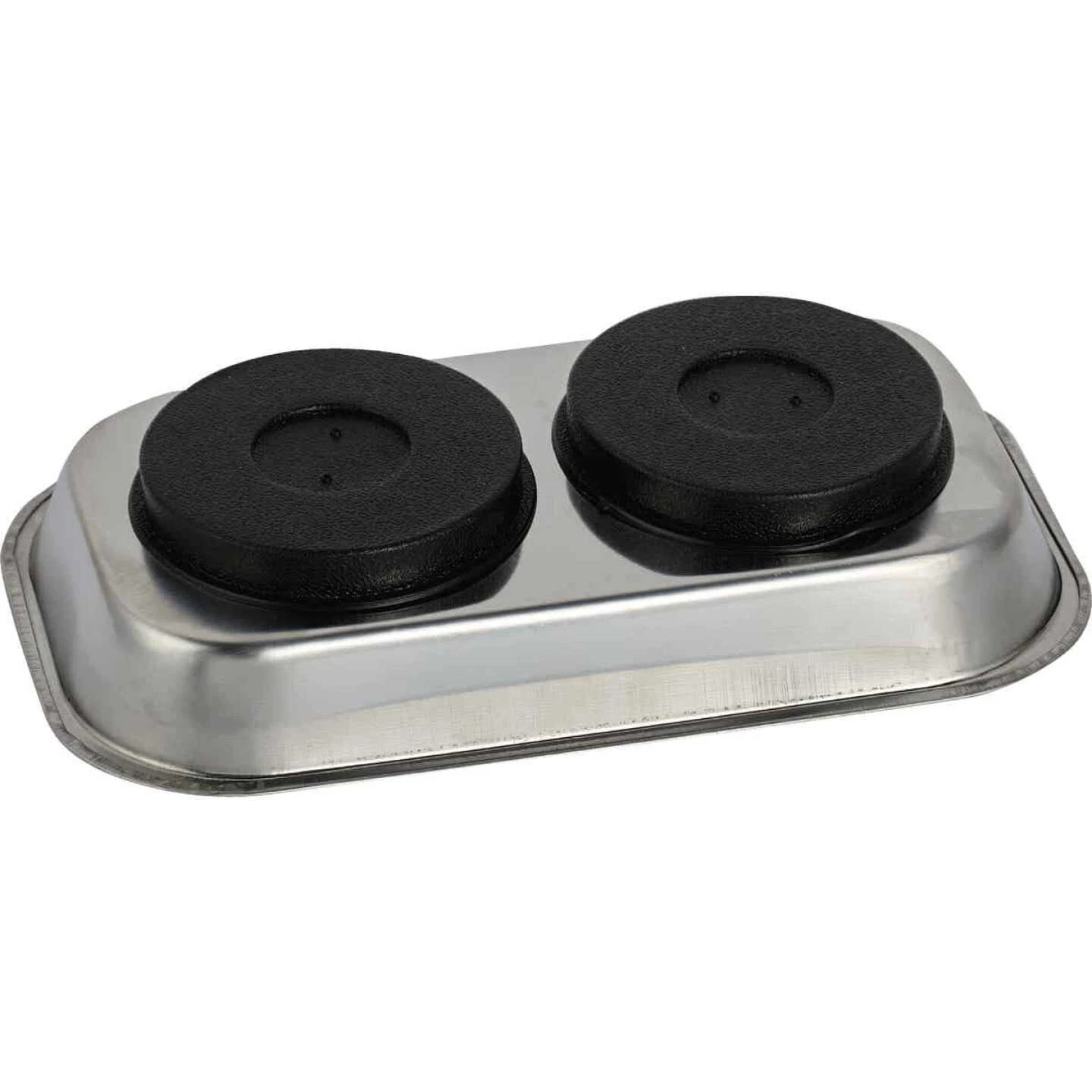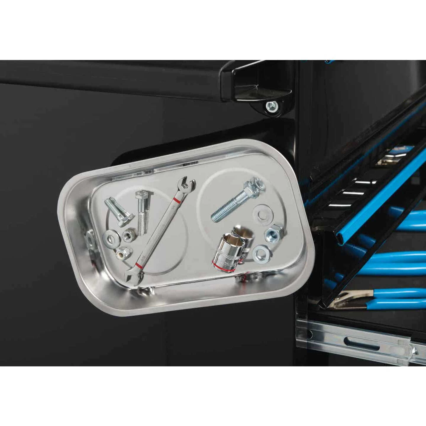 Contains powerful ceramic magnets with rubber covers in the base which secure tray to a metal toolbox or table while keeping important metal pieces at hand. Use to store metal parts and tools during assembly and disassembly. Keep loose nuts, screws, and other small metal items in reach. Ideal for mechanics, craftsmen, and hobbyists.