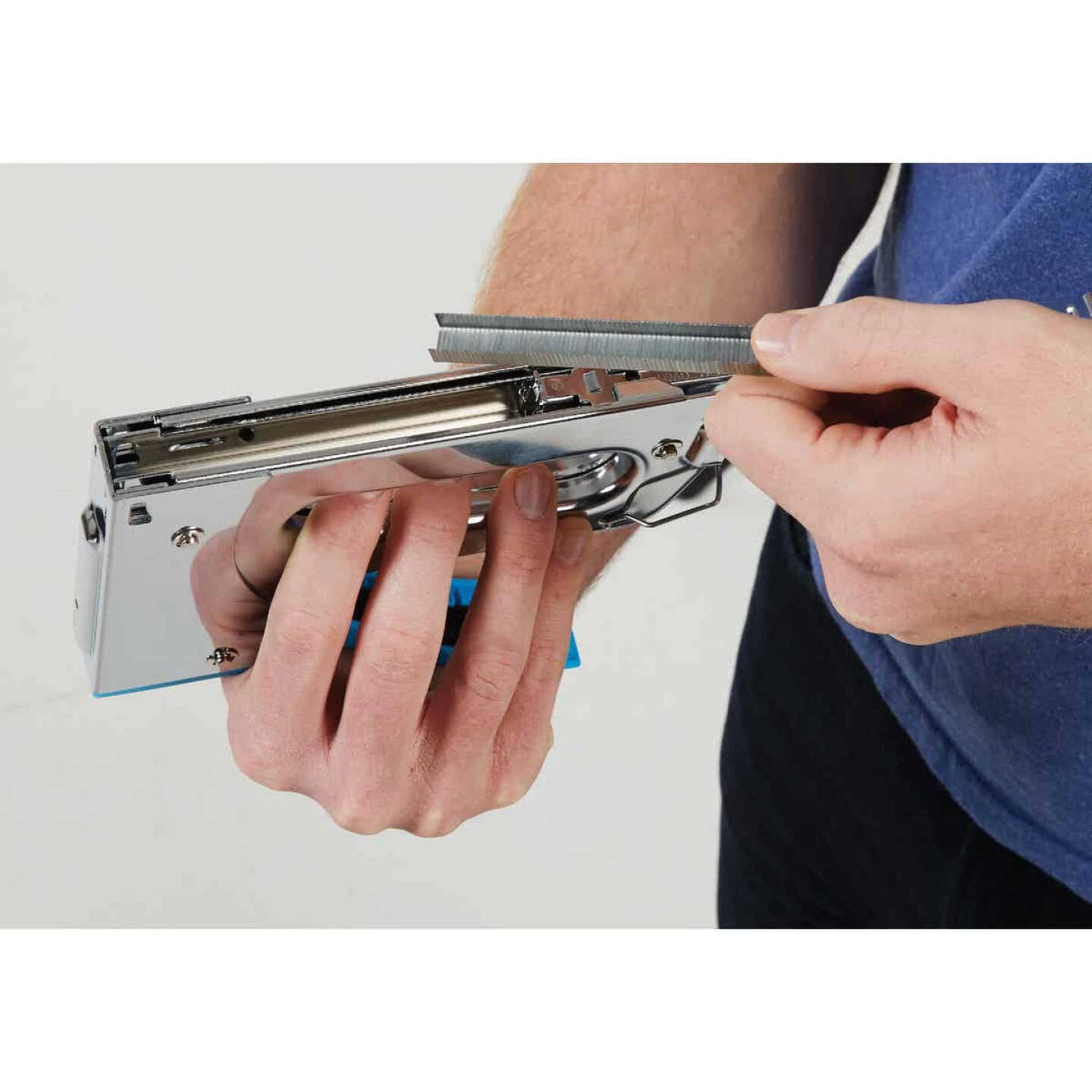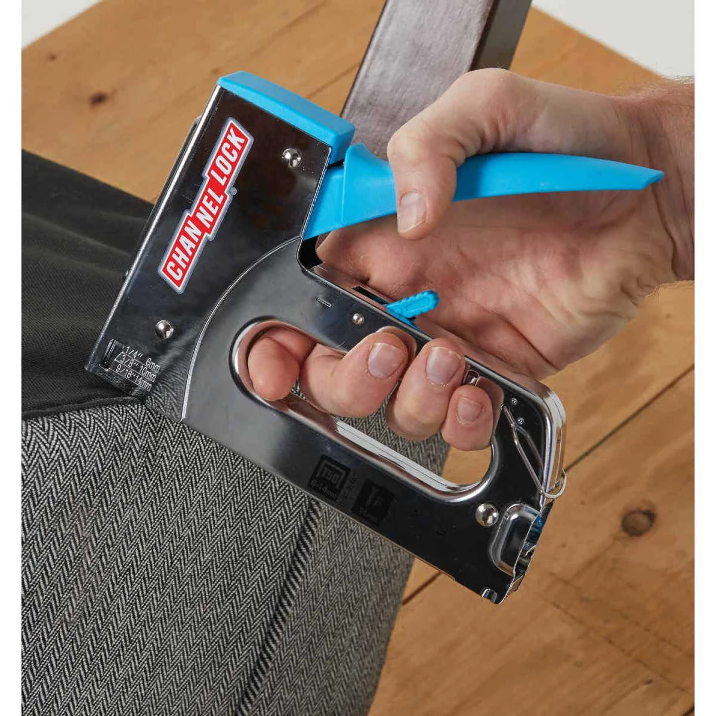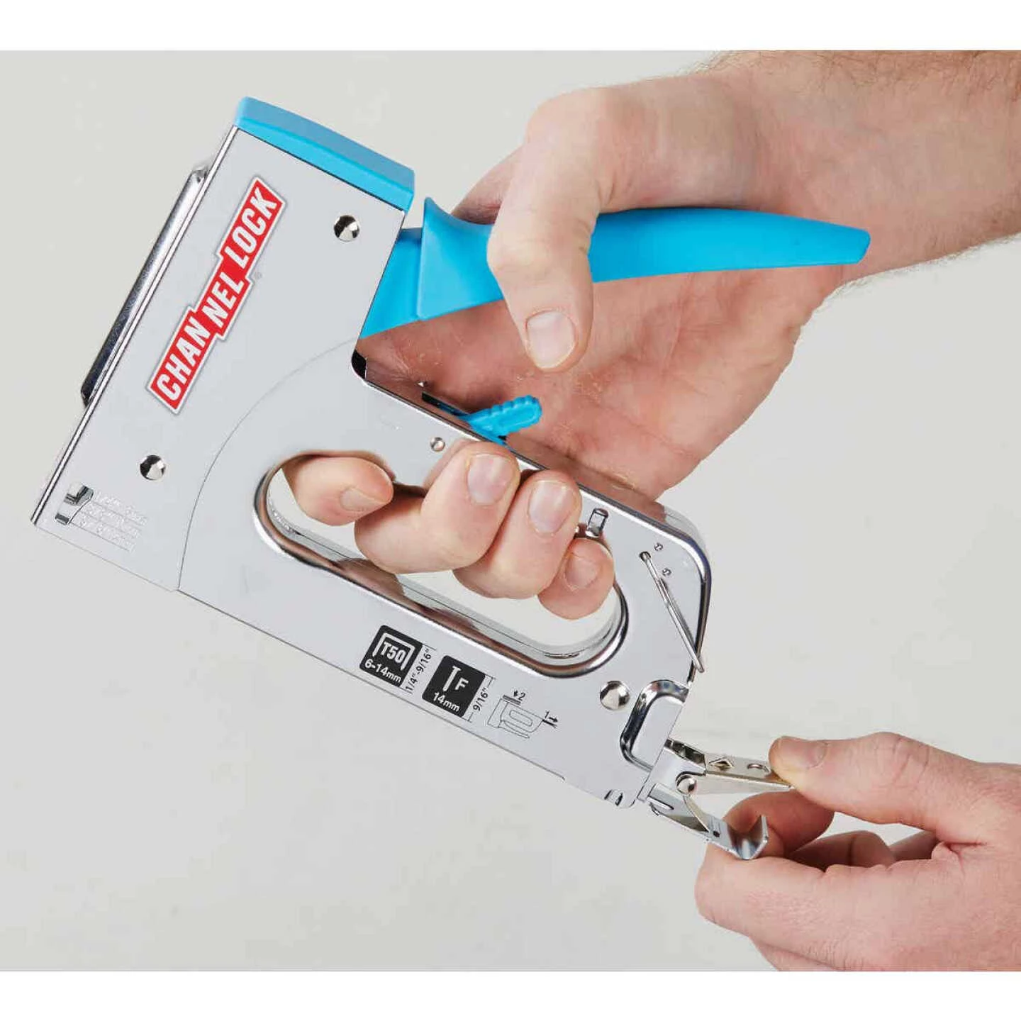 The Channellock all metal construction with chrome finish is designed for comfort and durability, it is the ideal staple gun for home or professional applications. Features easy squeeze handle and high/low power adjustment. Uses No. 1/4 In., 5/16 In., 3/8 In., 1/2 In., and 9/16 In. staples, 9/16 In. brads, or No. 4 narrow crown Arrow No. T50 heavy-duty staples. Easy access staple channel. Includes 168 pc. box of 5/16 In. heavy-duty staples.