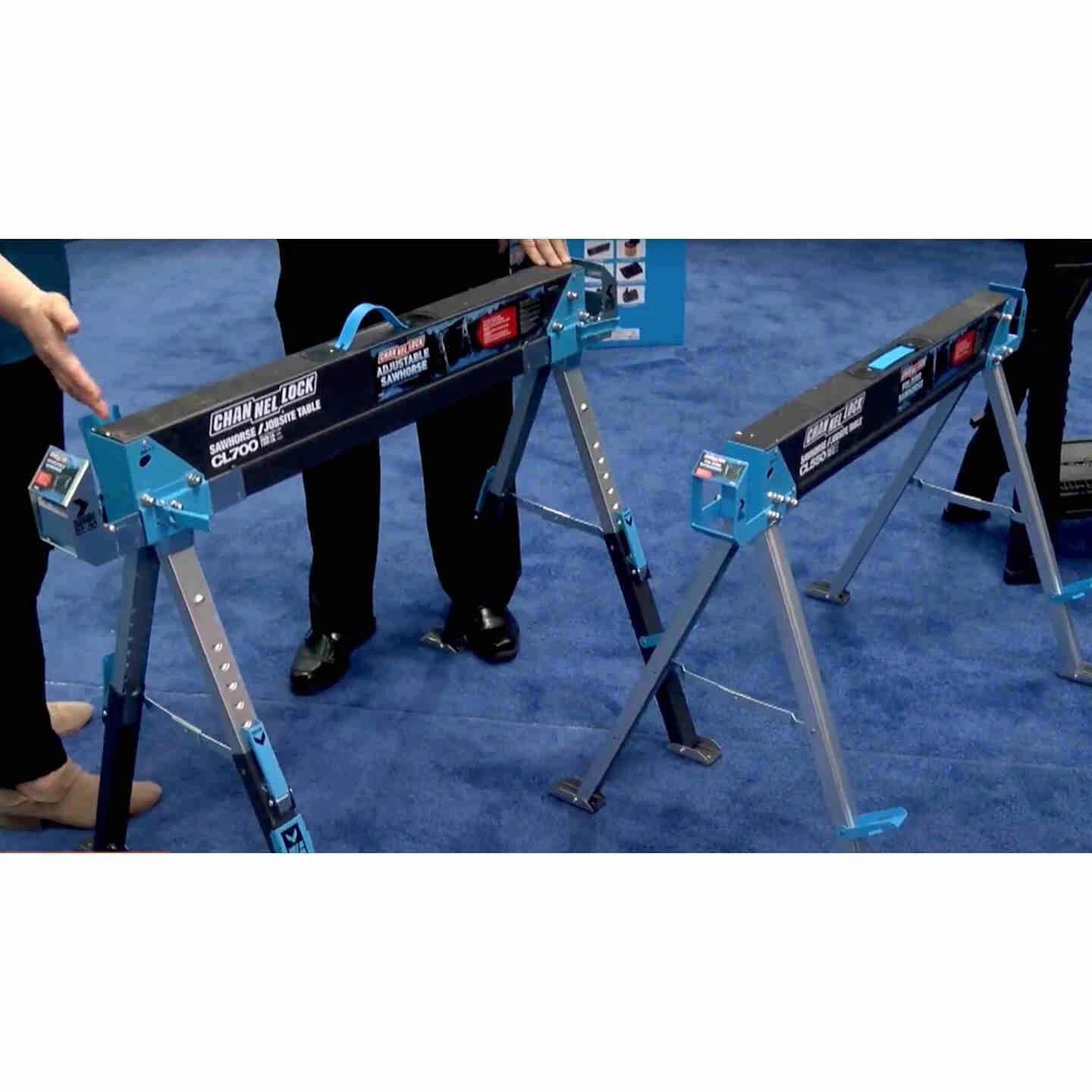 Adjustable from 27-1/2 In. to 43-1/2 In. and supports up to 250 Lb. Heavy-duty frame folds flat for easy storage. Features easy lock release handle and slip resistant foot pads. Fully assembled.
