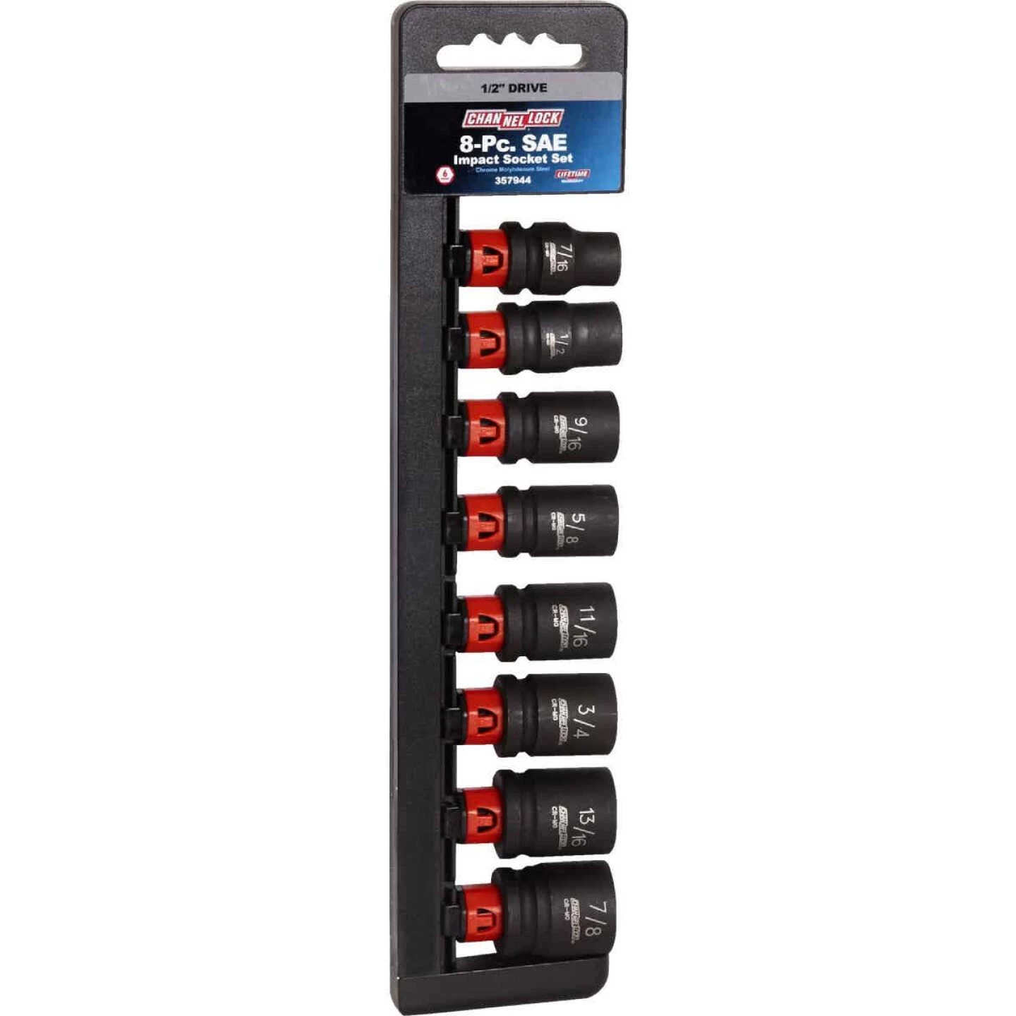 6-point sockets offer more surface area making them less likely to slip off or round over corners. Chrome molybdenum steel with black oxide finish. Lifetime warranty. Includes sizes: 7/16″, 1/2″, 9/16″, 5/8″, 11/16″, 3/4″, 13/16″, 7/8″. Plastic storage rack.